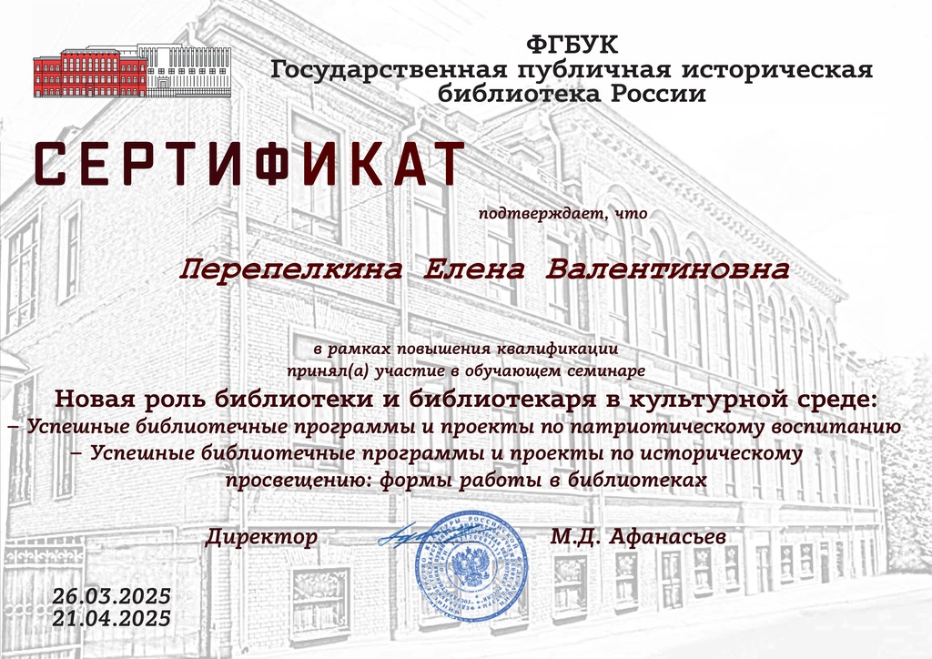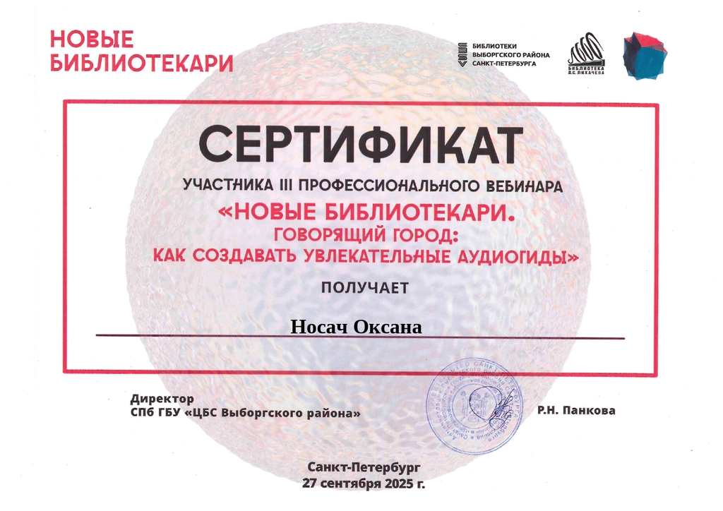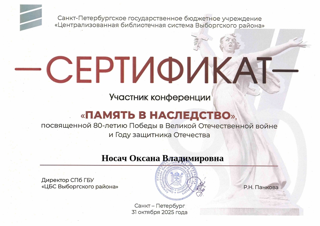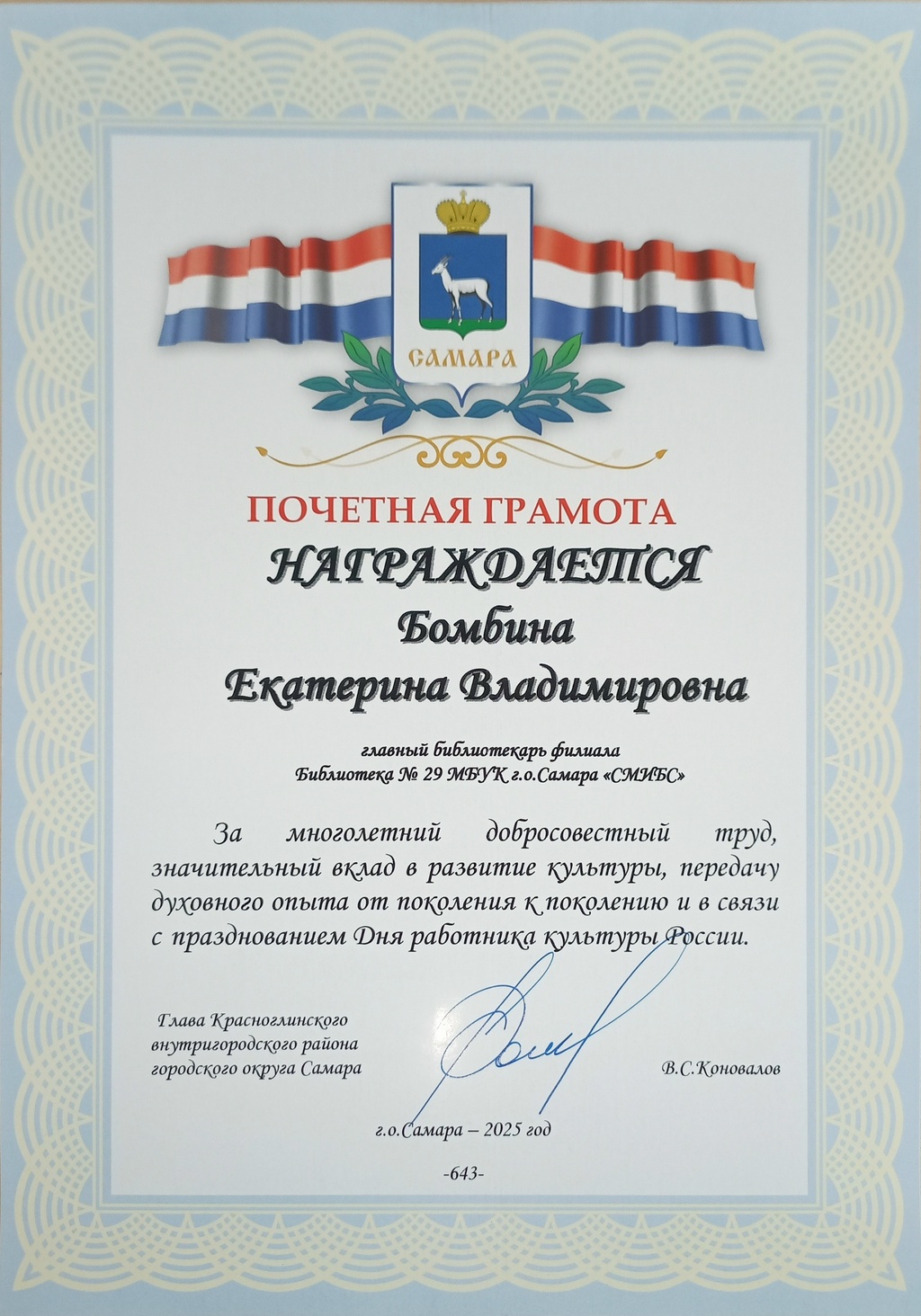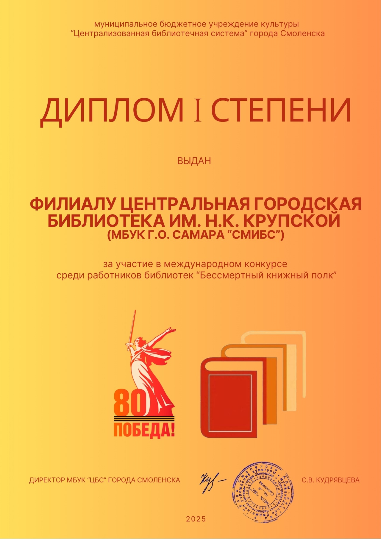 Чиндина М.С., ЦГБ ЦГБ Тишина Е.А., ЦГБ Коноплева Т.А., ЦГБ ф1 Воробьёва Е. Л. Диплом ф1 Батова Н. Г. Диплом Барсукова_ф33_Диплом_участника Перепелкина Е.В., ЦГБ Ф.12 Диплом (Лермонтов) ф.12 Диплом VIII Всероссийская акция 200 минут чтения Сталинграду посвящается Бомбина Е.В. Библиотека №29 Почетная грамота Оберт Л.А., отдел развития Почетная грамота Данилова О.В., ф.7 грамота Белова Л.Н. ф.11 Грамота Тихонова И.Ю. ф.11 Грамота благодарность Роману Сукманову благодарность библиотеке 16 благодарность Гузановой Е.А., ф.16 благодарность Кузнецовой С.В., ф.16 ф.31 коллективу филиала от Администрации района Ф.28 Стрижакова Благодарность Администрации Красноглинского района Т.И. Ф.28 Стрижакова Т.И. Благодарность ТОС Управленческий Библиотека №29 Благодарность Немчанова ф.2 Воробьёва ф.1 Левина ф.2 Ф.22 Морозова, отдел развития Суворов А.С., отдел развития Ф.28 Благодарственное письмо Департамент 80 лет Библиотеке 28 Костина О.С. ф19 Благодарственное письмо ф.6 Благодарственное письмо ф.5 Евтюхина С.И., Библиотека №29 Благодарственное письмо Бомбина Е.В. Библиотека №29 Благодарственное письмо Черных Л.Н. Библиотека №29 Благодарственное письмо Князевой Г.Ю. Библиотека №29 Благодарственное письмо Библиотека №29 Благодарственное письмо Горбунова Е. В., ф.5 Благодарственное письмо Конференция Ваулина Л.Б., ф.8 Ф.12 Валеева А.Г. Благодарственное письмо Черных Л.Н. Библиотека №29 Благодарственное письмо Данилова О.В., ф.7 Благодарственное письмо ф.11-БП Тихонова И.Ю. ф.11 БП ф.11 БП Бомбина Е.В. Библиотека №29 Благодарственное письмо Черных Л.Н. Библиотека №29 Благодарственное письмо Костина О.С., ф19 Благодарственное письмо Оберт Л.А., отдел развития ф.11-1 Горбунова Е.В., ф.5 Горбунова Е.В., ф.5 Библиотека № 5 Носач О.В., ф.5 Руденко О.Н., ф.5 Библиотека № 5 Горбунова Е.В., ф.5 Арсланова О.В., ф.5 Преодоление Носач О.В., ф.5 Горбунова Е.В., ф.5 ф.11-2 Ф.12 Матерова (Шукшин) Ф12 Сертификат волонтеры 2025 Тимофеева Ю.К. Морозова Ю.Д. Оберт Л.А. Оберт Л.А., отдел развития Оберт Л.А., отдел развития Оберт Л.А. Ф.28 СтрижаковаТ.И. Диплом Засекинские чтения Носач О.В., ф.5 Ф.12 Сертификат участника Тишина Е.А., ЦГБ Краснянская И.Ю., ф.5 Сертификат участника Память в наследство Носач О.В., ф.5 сертификат Головченко У. Сертификат Комиссаровой Т. Сертификат Тихоновой И.Ю. Сертификат Чистяковой А. Перепелкина Е.В., ЦГБ Оберт Л.А., ОР Носач О.В., ф.5 Сертификат Носач О.В., ф.5 Носач О.В. Оберт Л.А. Носач О.В, ф.5