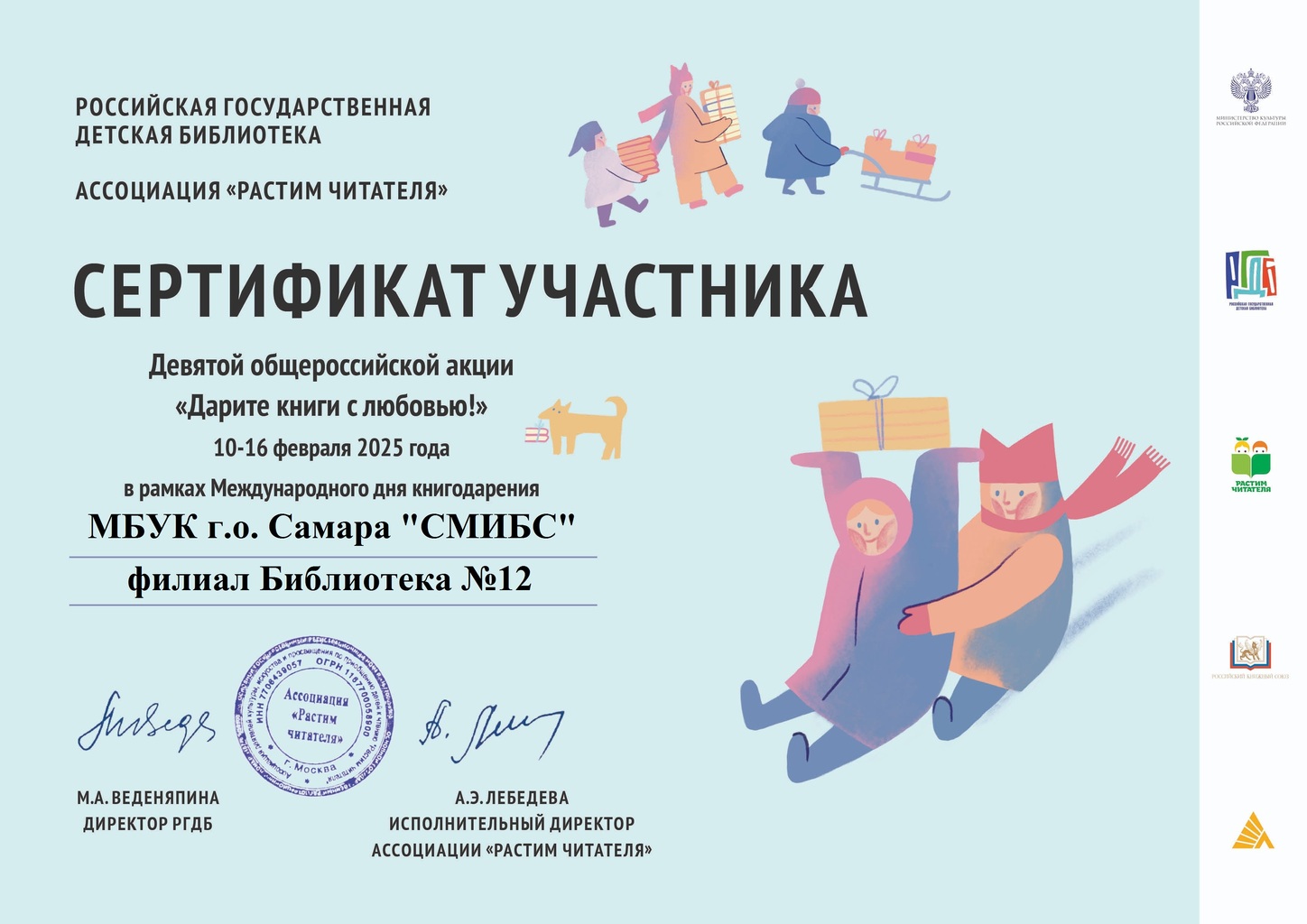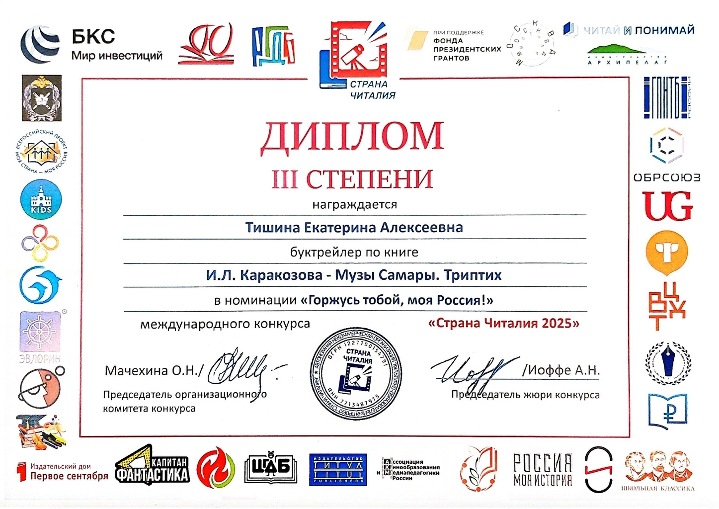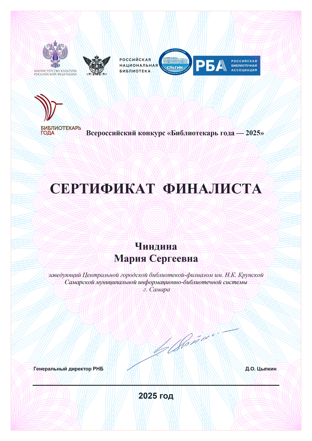Чиндина М.С., ЦГБ Данилова О.В., ф.7 грамота Барсукова_ф33_Диплом_участника ф1 Воробьёва Е. Л. Диплом ф1 Батова Н. Г. Диплом Тишина Е.А., ЦГБ Коноплева Т.А., ЦГБ благодарность библиотеке 16 благодарность Роману Сукманову благодарность Гузановой Е.А., ф.16 благодарность Кузнецовой С.В., ф.16 ф.31 коллективу филиала от Администрации района Горбунова Е. В., ф.5 Благодарственное письмо Конференция Перепелкина Е.В., ЦГБ ф.6 Благодарственное письмо Костина О.С., ф19 Благодарственное письмо Костина О.С. ф19 Благодарственное письмо Немчанова ф.2 Воробьёва ф.1 Левина ф.2 ф.5 Оберт Л.А., отдел развития Почетная грамота Морозова, отдел развития Ф.22 Ф.12 Валеева А.Г. Благодарственное письмо Данилова О.В., ф.7 Благодарственное письмо Ф.12 Матерова (Шукшин) Ф12 Сертификат волонтеры 2025 Ф.12 Диплом (Лермонтов) ф.12 Диплом VIII Всероссийская акция 200 минут чтения Сталинграду посвящается Ф.12 Сертификат участника Тишина Е.А., ЦГБ Краснянская И.Ю., ф.5 Сертификат участника Память в наследство Носач О.В., ф.5