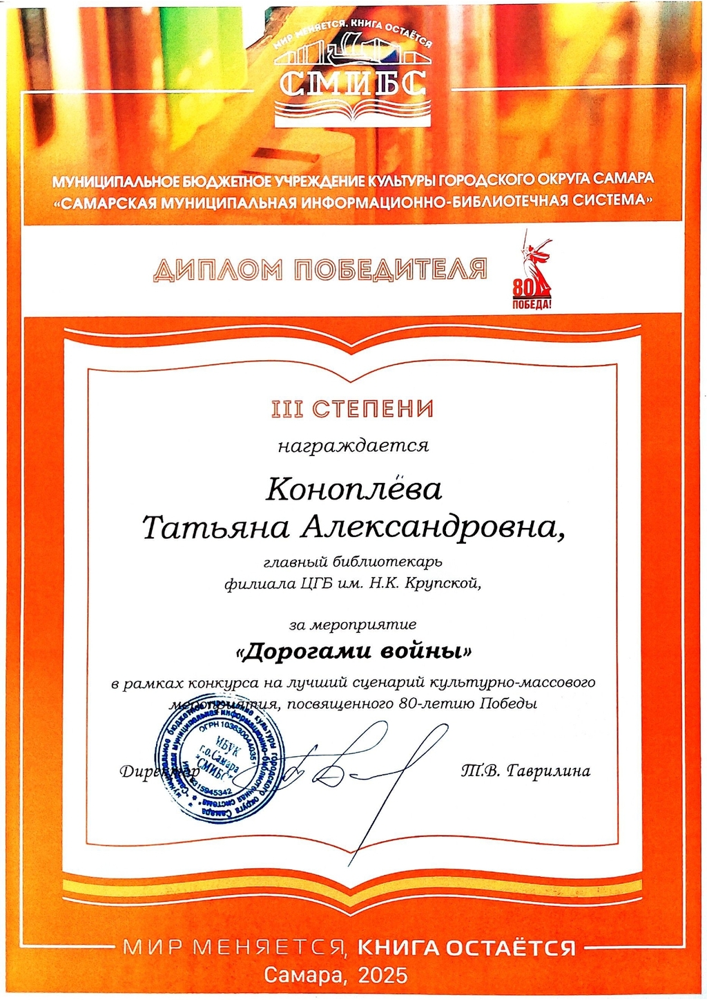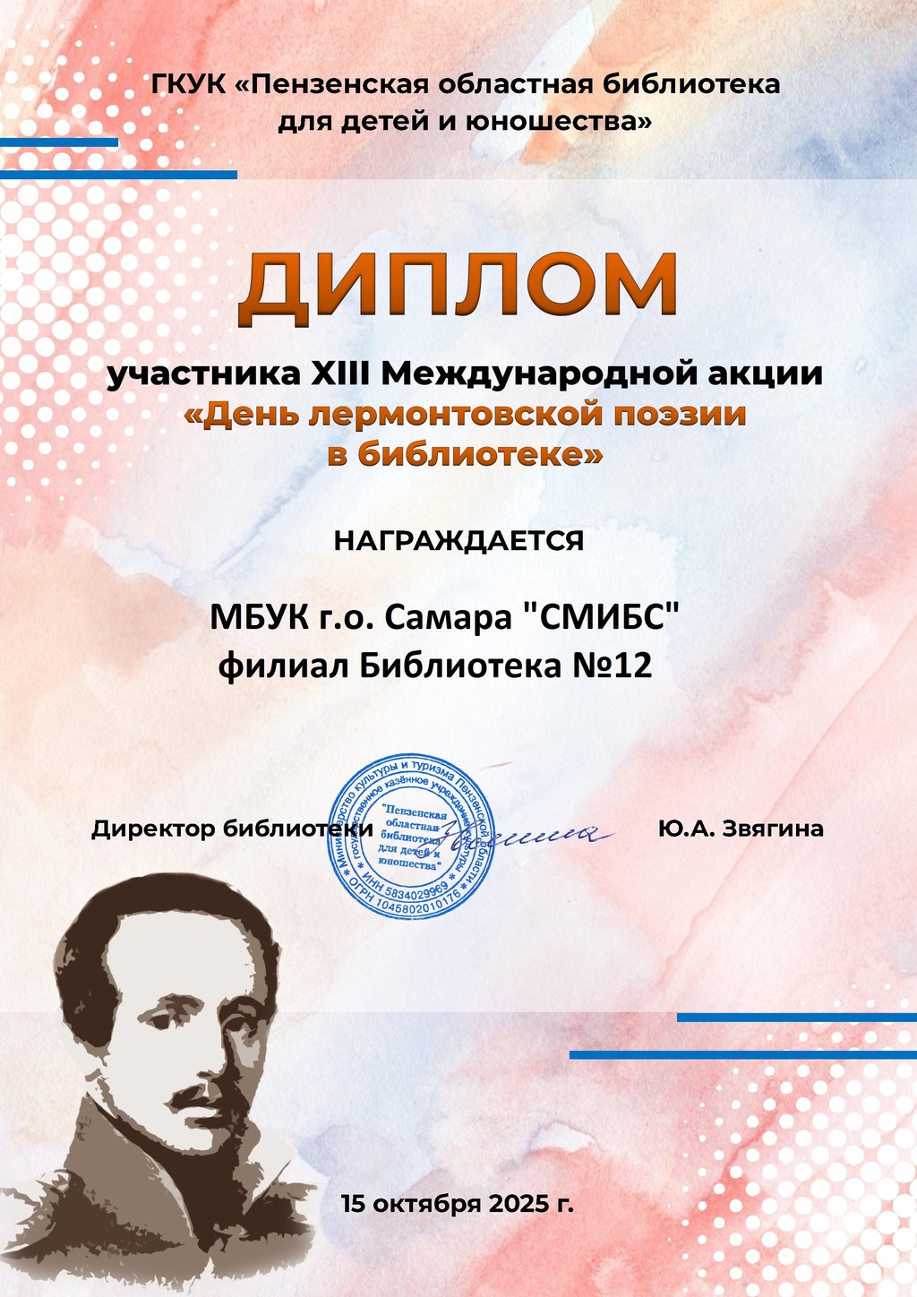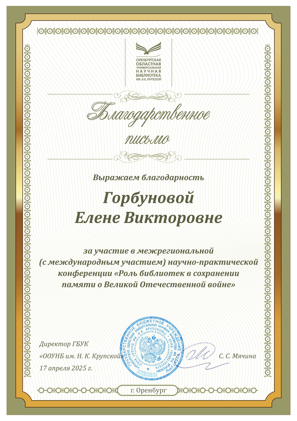Чиндина М.С., ЦГБ Данилова О.В., ф.7 грамота Барсукова_ф33_Диплом_участника ф1 Воробьёва Е. Л. Диплом ф1 Батова Н. Г. Диплом Тишина Е.А., ЦГБ Коноплева Т.А., ЦГБ благодарность библиотеке 16 благодарность Роману Сукманову благодарность Гузановой Е.А., ф.16 благодарность Кузнецовой С.В., ф.16 ф.31 коллективу филиала от Администрации района Горбунова Е. В., ф.5 Благодарственное письмо Конференция Перепелкина Е.В., ЦГБ ф.6 Благодарственное письмо Костина О.С., ф19 Благодарственное письмо Костина О.С. ф19 Благодарственное письмо Немчанова ф.2 Воробьёва ф.1 Левина ф.2 ф.5 Оберт Л.А., отдел развития Почетная грамота Морозова, отдел развития Ф.22 Ф.12 Валеева А.Г. Благодарственное письмо Данилова О.В., ф.7 Благодарственное письмо Ф.12 Матерова (Шукшин) Ф12 Сертификат волонтеры 2025 Ф.12 Диплом (Лермонтов) ф.12 Диплом VIII Всероссийская акция 200 минут чтения Сталинграду посвящается Ф.12 Сертификат участника Тишина Е.А., ЦГБ Краснянская И.Ю., ф.5 Сертификат участника Память в наследство Носач О.В., ф.5
