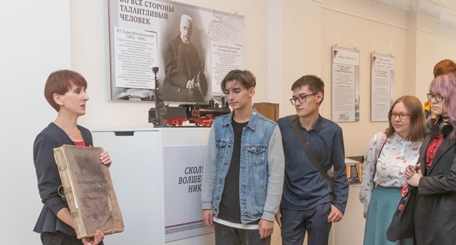 Выставка представляет собой визуальное полотно, составленное из четырёх основных разделов, отображающих жизнь и творчество писателя, инженера, путешественника, общественного деятеля, чья жизнь на протяжении 20 лет была связана с Самарским краем. Литературная деятельность Гарина-Михайловского показана неотрывно от его профессионального дела, связанного со строительством железных дорог.