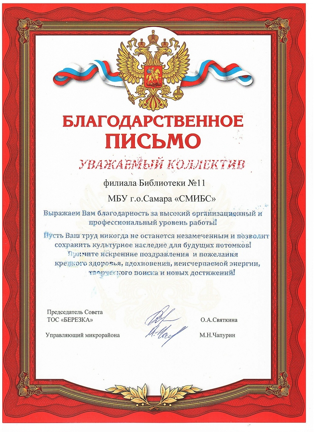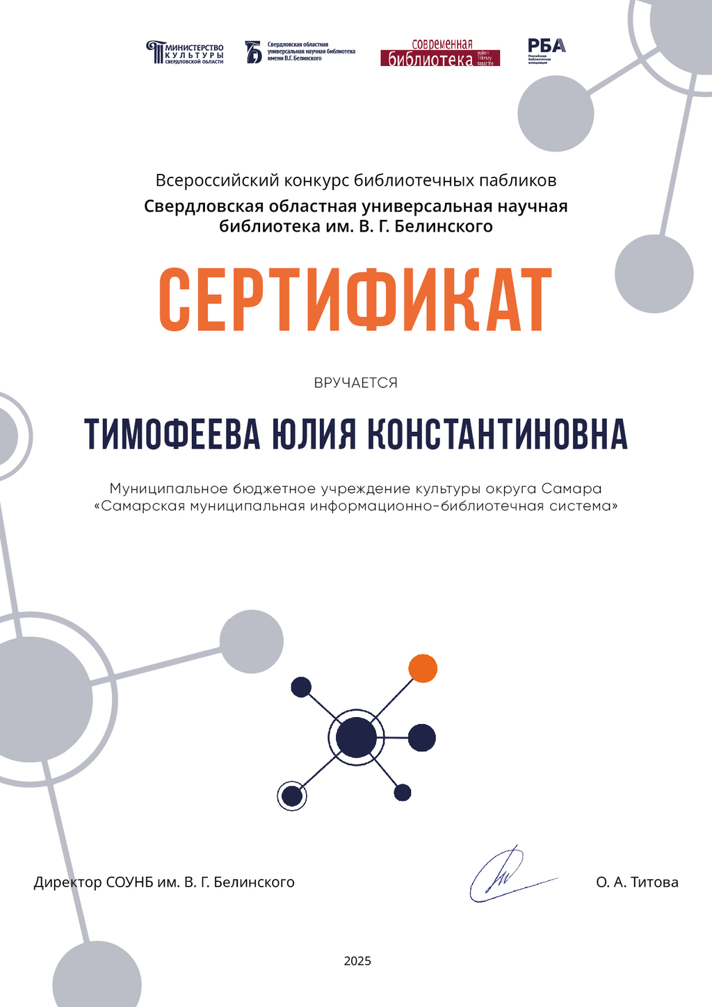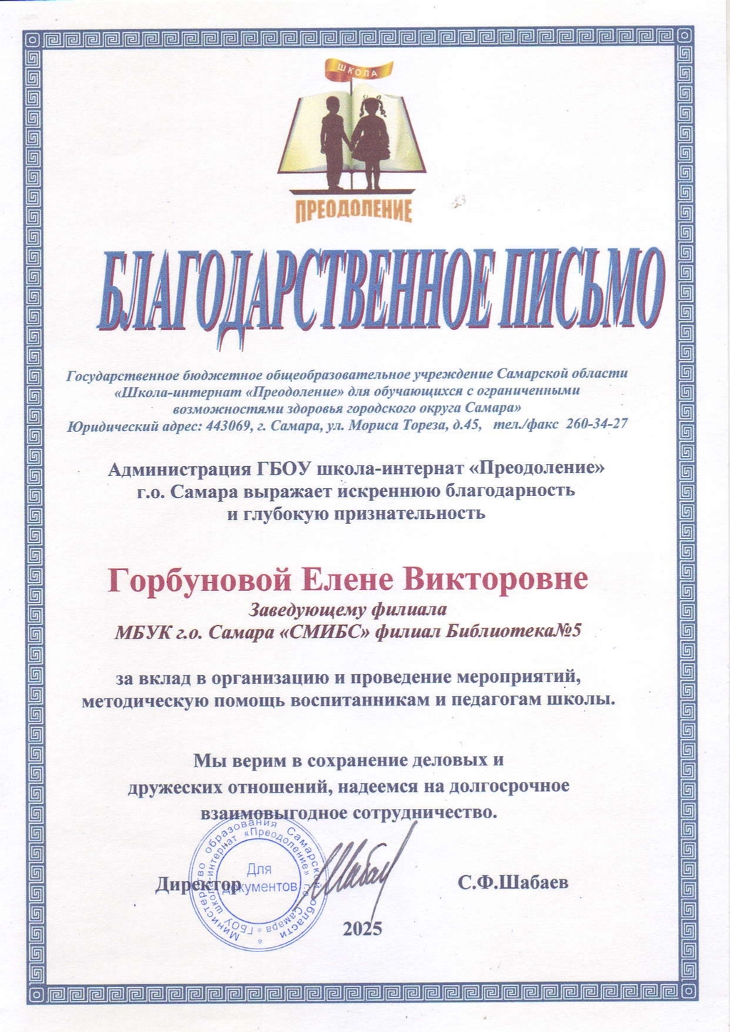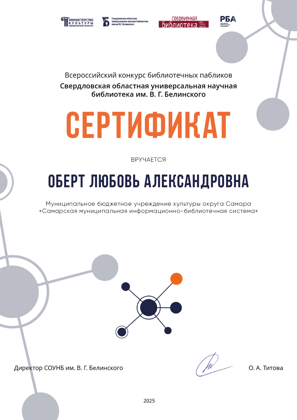 СМИБС Сыромятниковой С.С., директору СМИБС Чиндина М.С., ЦГБ ЦГБ Тишина Е.А., ЦГБ Коноплева Т.А., ЦГБ Перепелкина Е.В., ЦГБ Ф.12 Диплом (Лермонтов) ф.12 Диплом VIII Всероссийская акция 200 минут чтения Сталинграду посвящается Данилова, ф.7 Диплом Бомбина Е.В. Библиотека №29 Почетная грамота Оберт Л.А., отдел развития Почетная грамота Данилова О.В., ф.7 грамота Белова Л.Н. ф.11 Грамота Тихонова И.Ю. ф.11 Грамота благодарность Роману Сукманову благодарность библиотеке 16 благодарность Гузановой Е.А., ф.16 благодарность Кузнецовой С.В., ф.16 ф.31 коллективу филиала от Администрации района Ф.28 Стрижакова Благодарность Администрации Красноглинского района Т.И. Ф.28 Стрижакова Т.И. Благодарность ТОС Управленческий Библиотека №29 Благодарность ф.8 благодарность Благодарность коллективу Библиотеки № 5 ф.8 благодарность от директора СМИБС Отдел развития Немчанова ф.2 Воробьёва ф.1 Левина ф.2 Ф.22 Морозова, отдел развития Суворов А.С., отдел развития Ф.28 Благодарственное письмо Департамент 80 лет Библиотеке 28 Костина О.С. ф19 Благодарственное письмо ф.6 Благодарственное письмо ф.5 Евтюхина С.И., Библиотека №29 Благодарственное письмо Бомбина Е.В. Библиотека №29 Благодарственное письмо Черных Л.Н. Библиотека №29 Благодарственное письмо Князевой Г.Ю. Библиотека №29 Благодарственное письмо Библиотека №29 Благодарственное письмо Горбунова Е. В., ф.5 Благодарственное письмо Конференция Ваулина Л.Б., ф.8 Ф.12 Валеева А.Г. Благодарственное письмо Черных Л.Н. Библиотека №29 Благодарственное письмо Данилова О.В., ф.7 Благодарственное письмо ф.11-БП ф.30 Кириленко. Благодарственное письмо (район) Тихонова И.Ю. ф.11 БП ф.11 БП Бомбина Е.В. Библиотека №29 Благодарственное письмо Черных Л.Н. Библиотека №29 Благодарственное письмо Костина О.С., ф19 Благодарственное письмо Оберт Л.А., отдел развития ф.11-1 Горбунова Е.В., ф.5 Горбунова Е.В., ф.5 Библиотека № 5 Носач О.В., ф.5 Руденко О.Н., ф.5 Библиотека № 5 Горбунова Е.В., ф.5 Арсланова О.В., ф.5 Преодоление Носач О.В., ф.5 Горбунова Е.В., ф.5 ф.11-2 Ф.12 Матерова (Шукшин) Ф12 Сертификат волонтеры 2025 Тимофеева Ю.К. Морозова Ю.Д. Оберт Л.А. Оберт Л.А., отдел развития Оберт Л.А., отдел развития Оберт Л.А. ф.7 Данилова, финансовая грамотность, сертификат Мерзлякова Н.С., ф.8 будущее библиотек Ф.28 СтрижаковаТ.И. Диплом Засекинские чтения Носач О.В., ф.5 Ф.12 Сертификат участника Ф.7 Сертификат Тишина Е.А., ЦГБ Краснянская И.Ю., ф.5 Сертификат участника Память в наследство Носач О.В., ф.5 сертификат Головченко У. Сертификат Комиссаровой Т. Сертификат Тихоновой И.Ю. Сертификат Чистяковой А. Перепелкина Е.В., ЦГБ Оберт Л.А., ОР Носач О.В., ф.5 Сертификат Носач О.В., ф.5 Носач О.В. Оберт Л.А. Носач О.В, ф.5