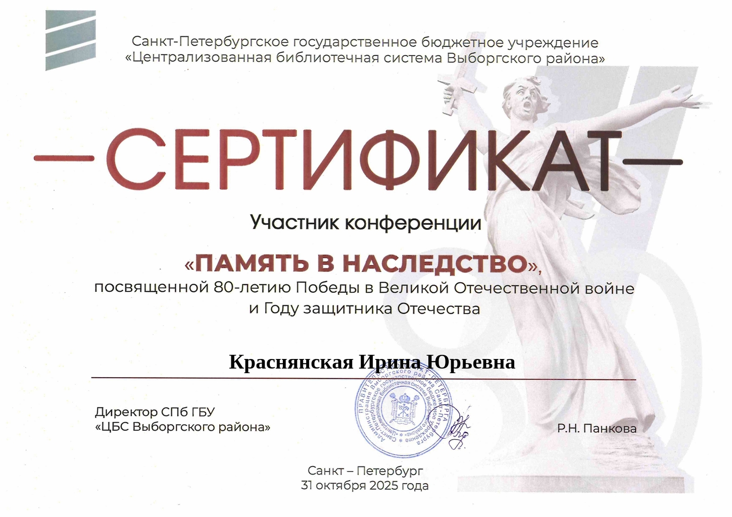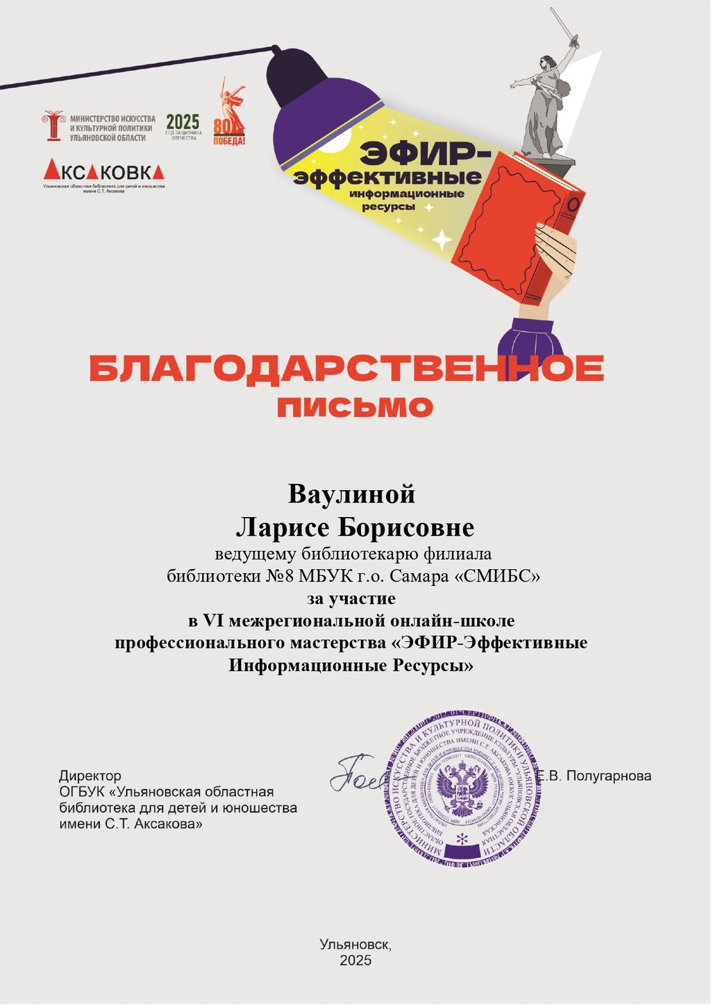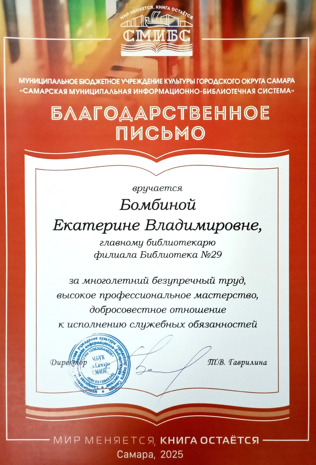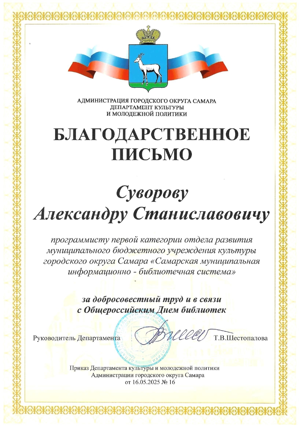 СМИБС Сыромятниковой С.С., директору СМИБС Чиндина М.С., ЦГБ ЦГБ Тишина Е.А., ЦГБ Коноплева Т.А., ЦГБ Перепелкина Е.В., ЦГБ Ф.12 Диплом (Лермонтов) ф.12 Диплом VIII Всероссийская акция 200 минут чтения Сталинграду посвящается Данилова, ф.7 Диплом Бомбина Е.В. Библиотека №29 Почетная грамота Оберт Л.А., отдел развития Почетная грамота Данилова О.В., ф.7 грамота Белова Л.Н. ф.11 Грамота Тихонова И.Ю. ф.11 Грамота благодарность Роману Сукманову благодарность библиотеке 16 благодарность Гузановой Е.А., ф.16 благодарность Кузнецовой С.В., ф.16 ф.31 коллективу филиала от Администрации района Ф.28 Стрижакова Благодарность Администрации Красноглинского района Т.И. Ф.28 Стрижакова Т.И. Благодарность ТОС Управленческий Библиотека №29 Благодарность ф.8 благодарность Благодарность коллективу Библиотеки № 5 ф.8 благодарность от директора СМИБС Отдел развития Немчанова ф.2 Воробьёва ф.1 Левина ф.2 Ф.22 Морозова, отдел развития Суворов А.С., отдел развития Ф.28 Благодарственное письмо Департамент 80 лет Библиотеке 28 Костина О.С. ф19 Благодарственное письмо ф.6 Благодарственное письмо ф.5 Евтюхина С.И., Библиотека №29 Благодарственное письмо Бомбина Е.В. Библиотека №29 Благодарственное письмо Черных Л.Н. Библиотека №29 Благодарственное письмо Князевой Г.Ю. Библиотека №29 Благодарственное письмо Библиотека №29 Благодарственное письмо Горбунова Е. В., ф.5 Благодарственное письмо Конференция Ваулина Л.Б., ф.8 Ф.12 Валеева А.Г. Благодарственное письмо Черных Л.Н. Библиотека №29 Благодарственное письмо Данилова О.В., ф.7 Благодарственное письмо ф.11-БП ф.30 Кириленко. Благодарственное письмо (район) Тихонова И.Ю. ф.11 БП ф.11 БП Бомбина Е.В. Библиотека №29 Благодарственное письмо Черных Л.Н. Библиотека №29 Благодарственное письмо Костина О.С., ф19 Благодарственное письмо Оберт Л.А., отдел развития ф.11-1 Горбунова Е.В., ф.5 Горбунова Е.В., ф.5 Библиотека № 5 Носач О.В., ф.5 Руденко О.Н., ф.5 Библиотека № 5 Горбунова Е.В., ф.5 Арсланова О.В., ф.5 Преодоление Носач О.В., ф.5 Горбунова Е.В., ф.5 ф.11-2 Ф.12 Матерова (Шукшин) Ф12 Сертификат волонтеры 2025 Тимофеева Ю.К. Морозова Ю.Д. Оберт Л.А. Оберт Л.А., отдел развития Оберт Л.А., отдел развития Оберт Л.А. ф.7 Данилова, финансовая грамотность, сертификат Мерзлякова Н.С., ф.8 будущее библиотек Ф.28 СтрижаковаТ.И. Диплом Засекинские чтения Носач О.В., ф.5 Ф.12 Сертификат участника Ф.7 Сертификат Тишина Е.А., ЦГБ Краснянская И.Ю., ф.5 Сертификат участника Память в наследство Носач О.В., ф.5 сертификат Головченко У. Сертификат Комиссаровой Т. Сертификат Тихоновой И.Ю. Сертификат Чистяковой А. Перепелкина Е.В., ЦГБ Оберт Л.А., ОР Носач О.В., ф.5 Сертификат Носач О.В., ф.5 Носач О.В. Оберт Л.А. Носач О.В, ф.5